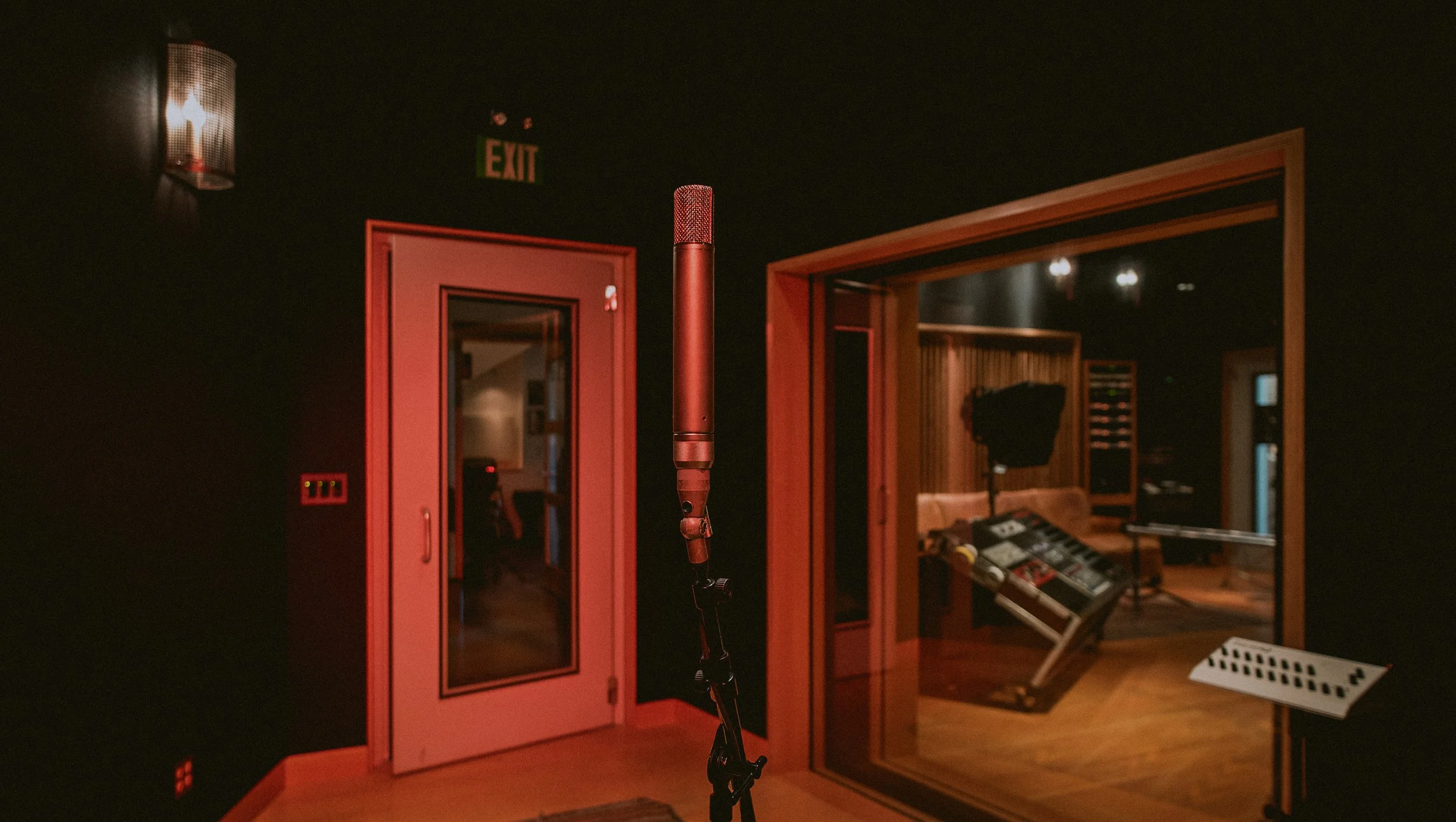 In addition to Iso 1 and 2, there are up to 6 additional spaces which are accessible via tie lines throughout the facility. Amplifiers, Leslie speakers, or other instruments that need to be acoustically isolated can be located in the Hallway, Vestibule, Musician's Lounge, Lobby, Edit Suite, and Mezzanine.